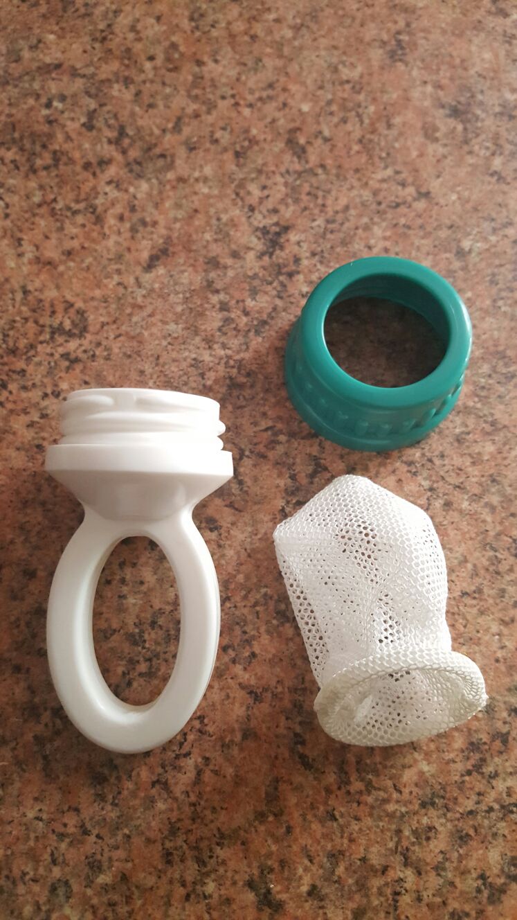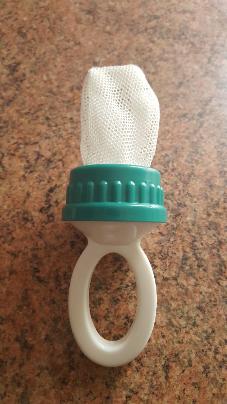 Una idea muy buena para las primeras frutas, al inicio de la alimentación complementaria. Al bebé le encanta, es muy seguro y útil para acostumbrarse a los nuevos sabores. El inconveniente es que se lavan bastante mal, lo que se soluciona poniendo un recambio nuevo a menudo - Ventajas:
