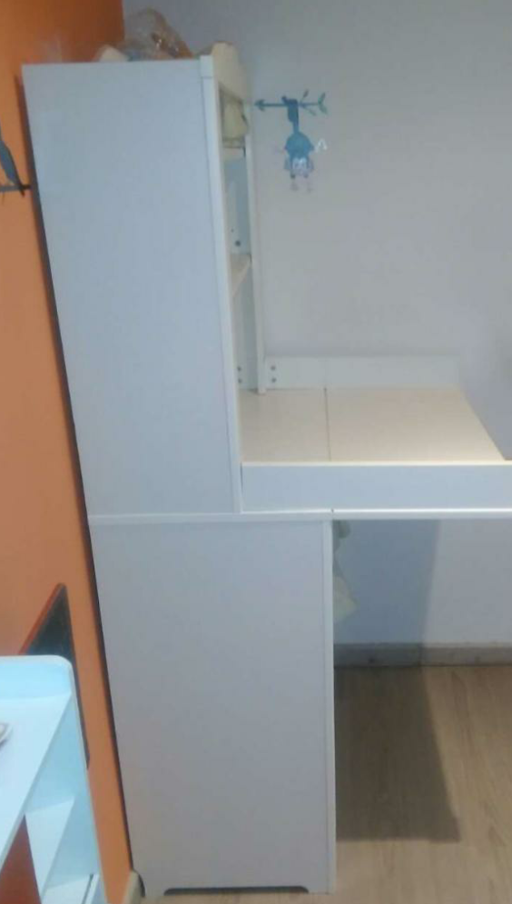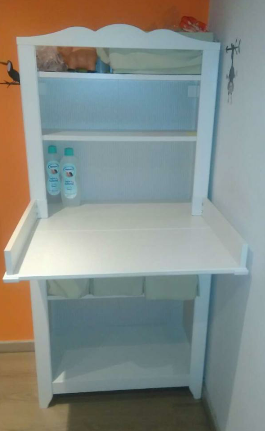 Cambiador robusto, muy bien diseñado. Muy útiles todas las baldas que trae, una vez que ya no lo necesitas su diseño te permite usarlo como librería -