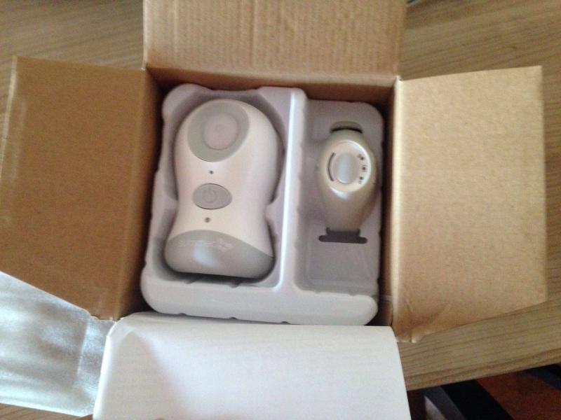 El intercomunicador consta de una base pequeña, que tiene que estar en la habitación del bebé conectada cerca de la cuna y una pulsera para llevar contigo.