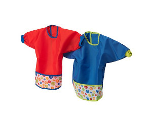 Estos baberos son totales, abarcan todo el torso y brazos del peque, cosa que ayuda para que pueda hacer todo el marrano que quiera con la pintura, iogur, harina,..y él queda intacto. Son fáciles de lavar, no son caros. Al peque no le acaban de convencer pero para el papá es ideal - Ventajas: