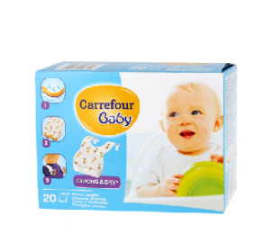 A mí me parecen ideales para cuando ya son más mayorcitos, y no se manchan tanto, para llevar en el bolso del carro y ponérselos cuando salimos a comer o cenar fuera porque así lo tiras y te olvidas (no tienes que andar guardando el babero sucio). El precio no está mal pero para usarlos puntualmente. Van 20 unidades. - Ventajas: