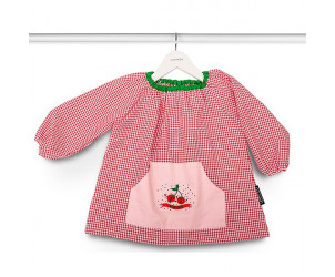 Bata escolar con textil de estilo vichy, perfecta para no mancharse al jugar, pintar o comer en la guardería o en casa. Confeccionada sin botones y con puños elásticos para un mejor ajuste, el tejido de gran calidad es muy fácil de lavar.