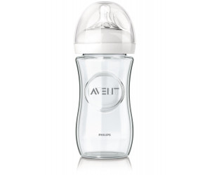 Biberón de cristal Natural 240 ml con tetina de flujo lento de Avent-Philips