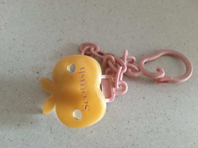 A parte de éste compré otros modelos de la misma marca porque me resultaron muy atractivos y no me parecieron caros. Son muy originales y las cadenas las hay en varios colores, además el enganche también lo puedes encontrar con diferentes formas, colores y grabados. Cumple su funcion a la perfección, ya que debido a la pinza que lleva es bastante improbable que el bebé se lo quite y lo pierda. El punto negativo es que no se puede esterilizar porque lo "metalizado" del enganche se estropea. - Ventajas: