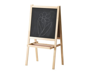Le gusta al niño y a mi, nos gusta mucho ya que tiene dos partes, una que es pizarra para pintar y escribir con tizas y otra cara blanca para pintar con rotuladores que se borran con facilidad. Se monta rápidamente y tiene una bandeja de madera para dejar las tizas, colores,... es muy chula y nada cara - Ventajas: