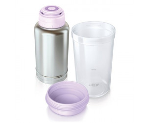 El calientabiberones en forma de termo de Philips AVENT puede calentar uno o más biberones sin uso de electricidad. En 2,5 minutos estará listo el contenido de un biberón de 180 ml.