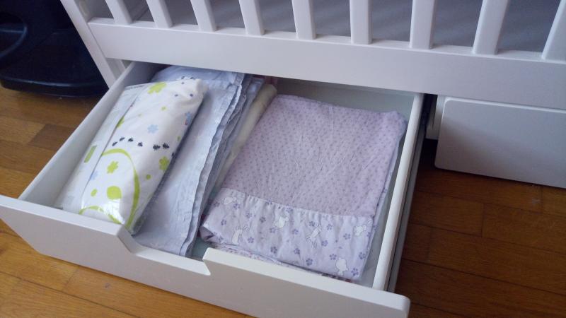 Me parece una cuna muy practica, ya que todo el espacio de la parte de abajo lo puedes aprovechar para guardar toda la ropita de otras temporadas, sin ocuparte mas espacio que el que ocupa la misma cuna. - Ventajas: