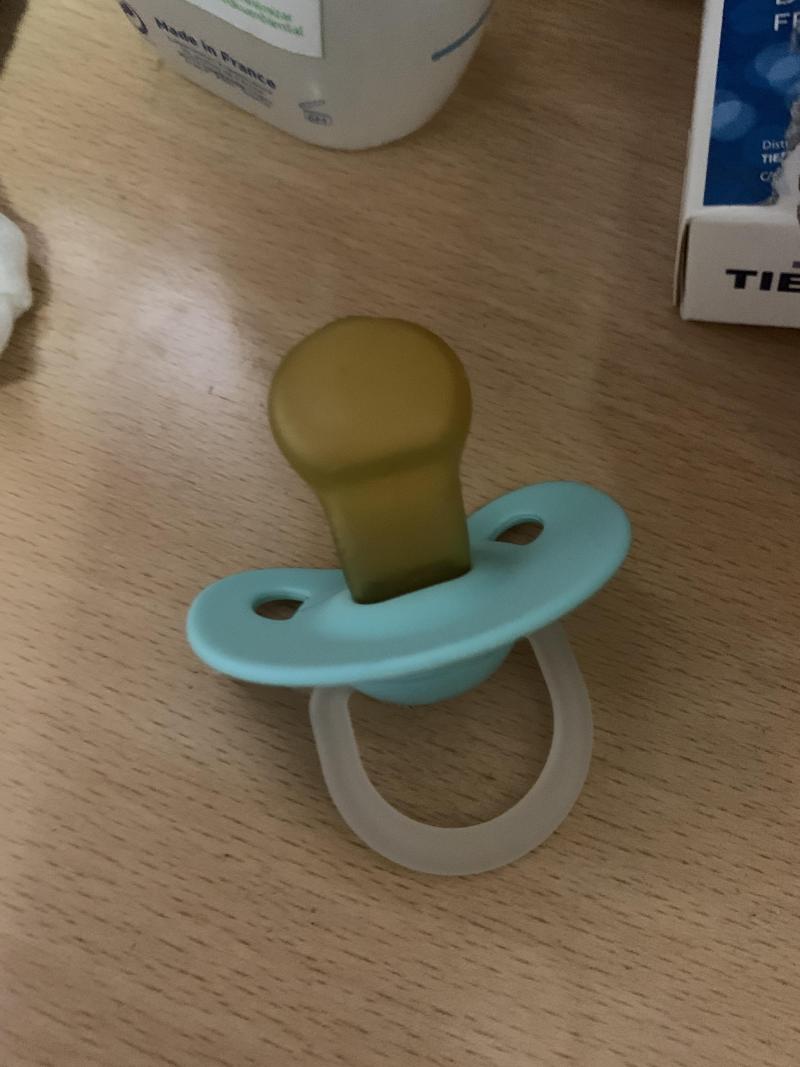 Me gusta mucho estos chupetes porque no tengo que levantarme por las noches a ponerle el chupe a mi hijo ya que la arandela del chupe se ve perfectamente en la oscuridad. - Ventajas: