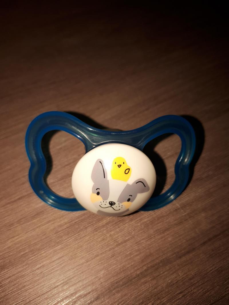 La verdad que he comprado chupetes de casi todas las marcas y este es de los que mas me ha gustado, al brillar por la noche lo puedo encontrar facilmente si el niño lo ha soltado durmiendo y luego lo busca se ve enseguida, la tetina me gusta mucho ya que tiene un tacto suave y se adapta muy bien y al final de la tetina es bastante finito para que no afecte a los dientes. - Ventajas: