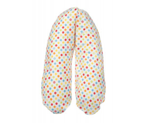 Cojín de lactancia Midi, aproximadamente de 170 x 34 cm, viene con una funda con diseño multicolor de lunares.