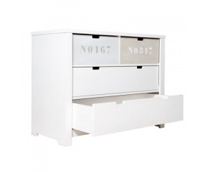 Estos cajones de almacenaje llevan una combinación de números y letras que le da un efecto más alegre, los cajones son reversibles: podrá escoger y cambiar su organización.