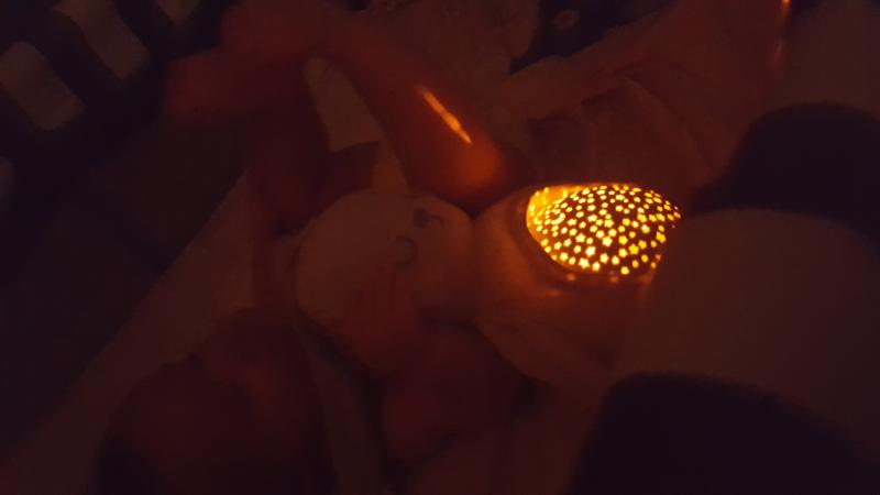 El proyector ilumina toda la habitacion, cambia la luz o la puedes dejar del color que quieras. La melodía no es la típica por lo a mi me ha encantado!!! Es muy suave a mi hija le encanta llevarse las orejas a la boca y como se puede lavar no hay ningún problema. Además no se calienta. De momento las tres noches que lo he puesto se ha dormido con el y ahora q nos vamos de viaje nos viene genial!! Ya que nos lo podemos llevar. - Ventajas: