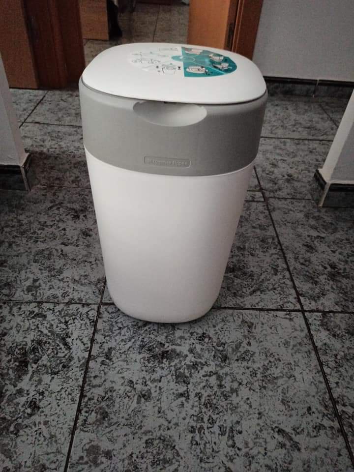 Este contenedor es una maravilla, puesto que tiras los pañales del bebé y no deja pasar olores.