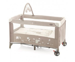 Cuna con dos alturas para cuando el bebe es mas pequeño y no se sienta,tiene tambien una barra de juegos,y un buen plegado para su transporte,solo que hasta que le coges el truco,sino cuesta abrirla y dejarla rigida - Ventajas: