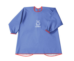 A pesar de tener un precio un poco elevado para un babero la verdad es que al final merece la pena porque se amortiza,la tela se lava genial y queda como nueva,es muy fácil de poner.Nosotros la hemos usado tanto para comer como para pintar el peque.Se puede usar mucho tiempo porque da de sí la talla sin problema aunque le quede corto de mangas. - Ventajas: