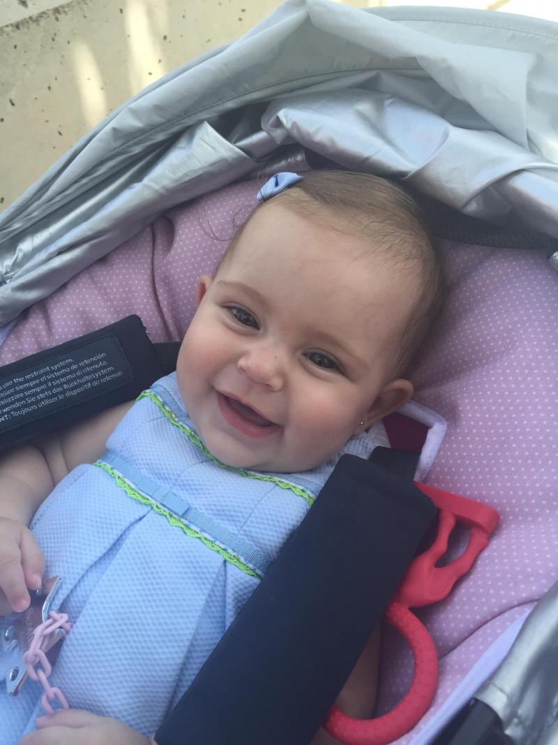 La niña ha estado muy cómoda en el capazo y en la silla. Es una silla alta y con muchas posibilidades de reclinado. Es fácil de limpiar y tiene un sistema para que no le dé el sol al bebé muy útil sin necedidad de sombrillas. - Ventajas: