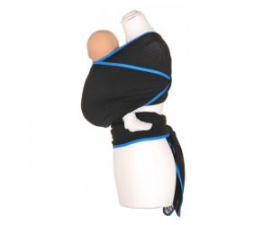 Largo y ancho, con los extremos en punta, el Wuti Wrap™ permite al usuario ajustar el porta bebés, a medida que el pequeño crece. El borde del pañuelo está realizado en un color azul de contraste para que te sea más fácil localizar cada extremo al ponértelo.