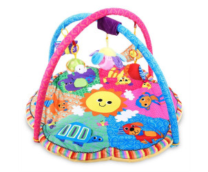 Este es un gimnasio muy completito, al bebé le encantaba se daba vueltas y vueltas y agarraba todo lo que colgaba. Ha pasado muy buenos ratos. Es muy agradable porque no pone como una moto al niño, tiene alegres colores y es de un tacto supersuave. Se lava sin problemas. Es un buen regalo. - Ventajas:
