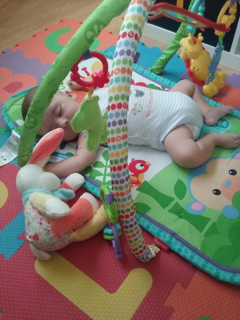 El gimnasio me ha gustado mucho. Es muy práctico y fácil de lavar, para mi era primordial ya que convivo con 2 perros y sueltan mucho pelo. Al bebé le gusta mucho, y se pasa un montón de tiempo entretenido. Y comparado con otros, está muy bien de precio - Ventajas: