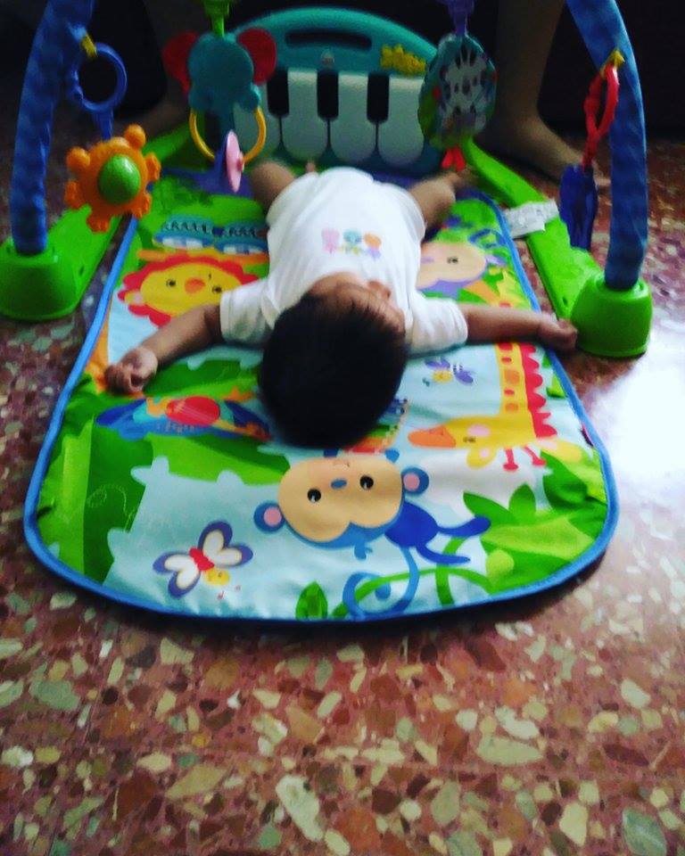 El juguete gustó mucho a nuestro hijo desde el primer día. El piano en los pies estimula mucho su movilidad. Ahora que ya no le gusta estar acostado en la manta de juegos como el piano se puede sacar lo puede seguir usando. Un juguete con el que el bebe pasará el tiempo muy entretenido - Ventajas: