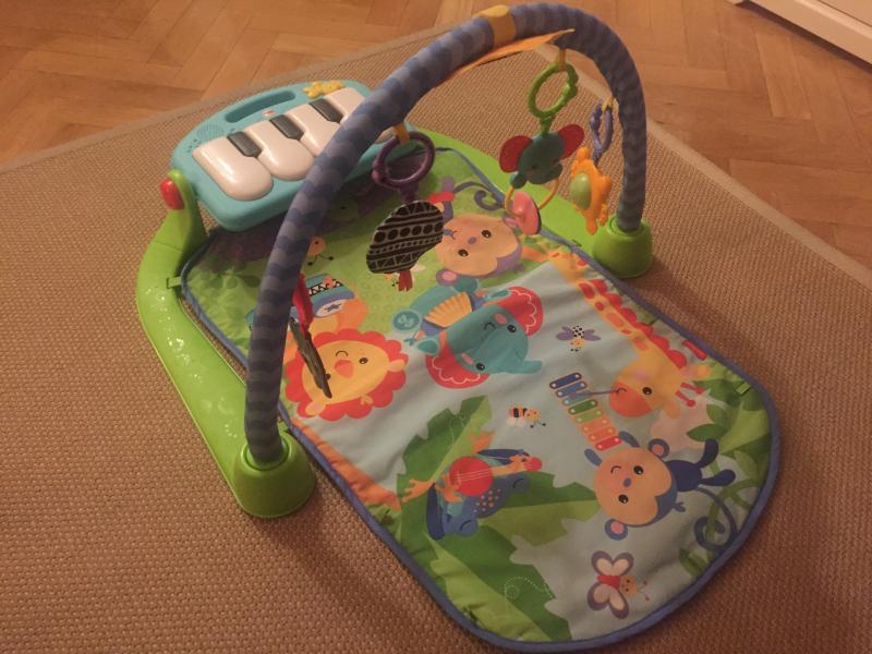 Gimnasio y piano pataditas de Fisher Price. El niño da pataditas y hace que suene la música.