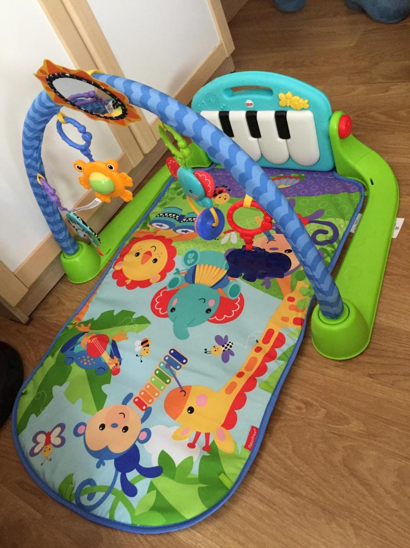 Un juguete que volvería a comprar. A mi hijo le encanta estar tumbado en la alfombra mientras se entretiene, cuando era más pequeño en ver a los juguetes jugando y más mayor intentando cogerlos. Un juguete muy útil que puede servir de ayuda para realizar ejercicios de psicomotricidad. Al tener el piano en los pies, la música no le llamaba la atención demasiado ya que no sabía de dónde venía, pero eso permitía fortalecer las piernas. Lo recomiendo 100 por 100 - Ventajas: