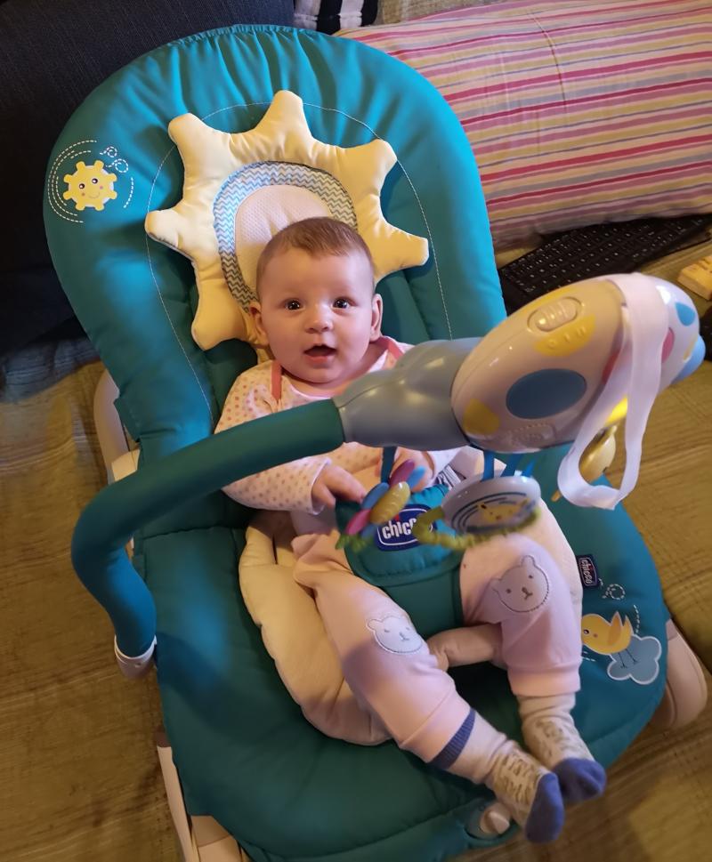 Fue un regalo y la verdad que estoy encantada con ella, a mi bebe le encanta supongo que por su comodidad y modo vibración, y para mi está genial me parece muy practica y gracias a sus asas te permite desplazarla de un lado a otro con comodidad, además tiene una patas desplegables para que pase de ser balancin a ser fija. Los colores son muy llamativos lo que la hace atractico para el niño, la única pega es que las luces estan en posición invertida (el bebe no puede verlas). - Ventajas: