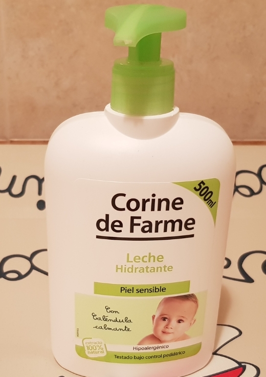 Tras unos días probando la leche hidratante de corine de farme, puedo decir que sí estamos contentos. Huele muy bien, hidrata y se absorbe rapidamente. Además es hipoalergénica para las pieles mas delicadas y contiene caléndula calmante. Por supuesto, está testada bajo control pediátrico. El formato a parte de muy buen tamaño es muy cómodo y práctico, también esto nos ha gustado mucho y el precio también fenomenal, comparado con otras del mercado, muy buena relación calidad-precio. - Ventajas:
