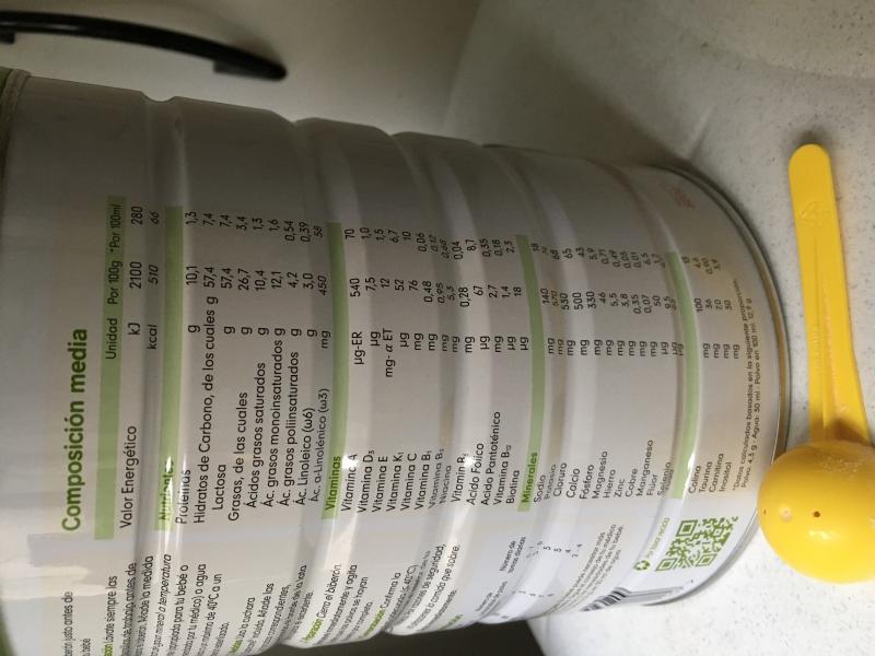 Nos dieron muchas muestras de esta leche y la verdad es que nos sorprendió porqué tenía buen gusto, se disuelve bien en agua, al peque le gusta y es una leche bastante natural con una composición que me convence más que el resto de leches de iniciación. No es fácil de encontrar y como estábamos con la leche biológica, ya seguimos con ésta, pero es una buena opció - Ventajas: