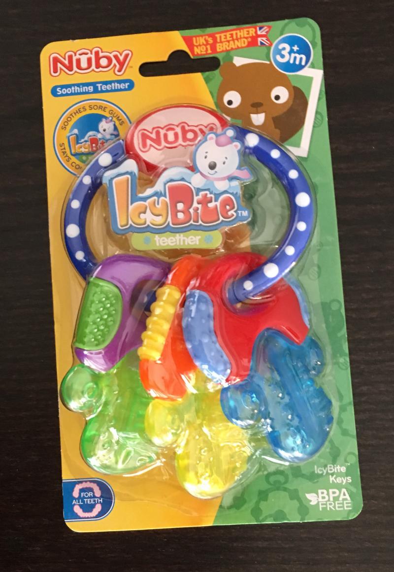 Llaves de dentición refrigerantes con pureICE Gel de Nuby. Ayudan al bebé a satisfacer las ganas de morder durante el proceso de dentición y calma sus encías.
