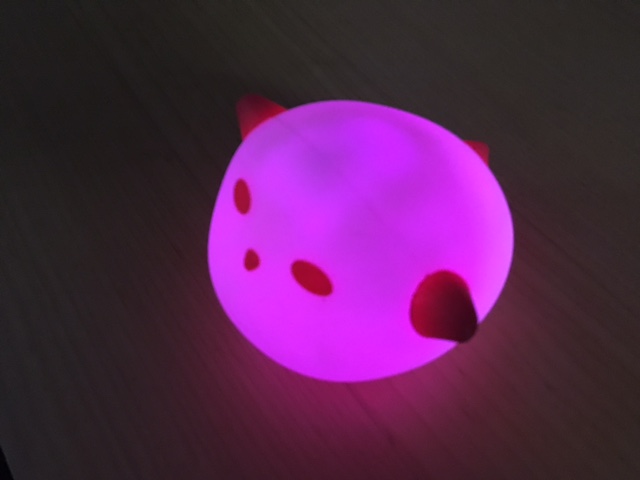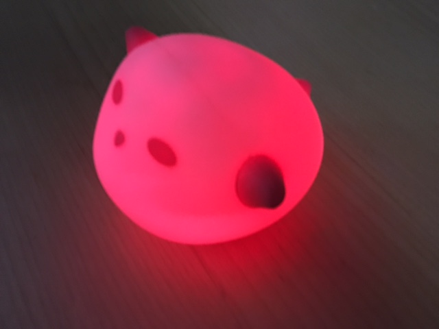 Es suave al tacto, La Luz es bastante agradable, tenue y es estupendo que cambie de colores. Se carga y no tiene pilas. Es muy fácil y gracioso de encender - Ventajas: