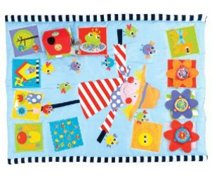 Es una manta enorme, con mucho color y diferentes actividades... Lo malo es que se le quedan pegadas las pelusas. Trae una casita y unas pelotitas. Se puede meter a la lavadora - Ventajas: