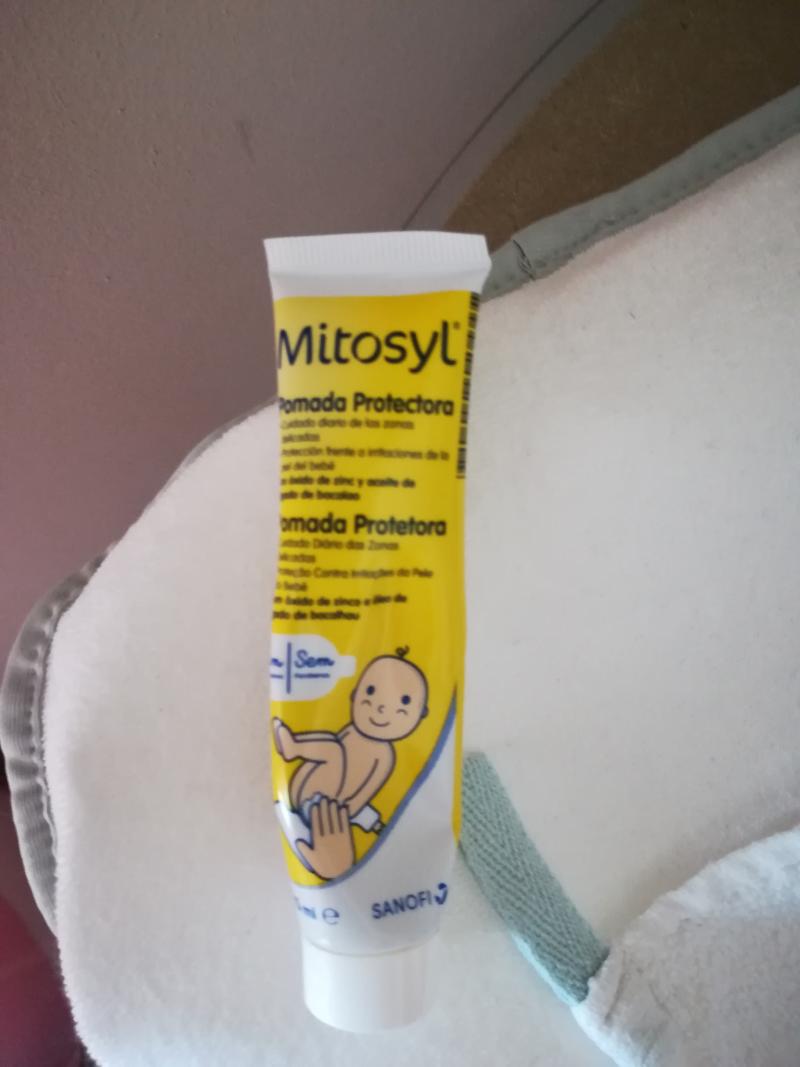 Mi pequeña va a hacer ahora los cuatro meses, y utilizamos esta pomada cuando vemos que tiene el culete irritado. Últimamente esta pasando por una epoca de granitos y rojeces y el mitosyl es nuestra salvación. Hidrata la piel más sensible dejando una capa protectora. Se extiende muy bien aunque sea de textura densa (tan densa que al bañar al bebé hay que pasar la esponja para eliminarla).
