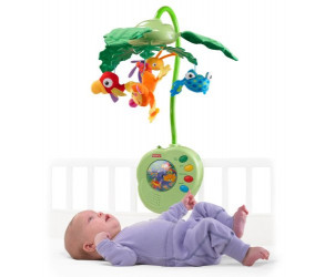 Consta de 3 modos de uso: música, movimiento y luces; música y movimiento o música con luz nocturna e incluye 3 juguetes extraíbles que giran al ritmo de la música.