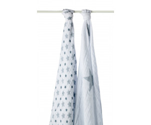 Conjunto de dos pañales en muselina de algodón (100%), de 120 cm x 120 cm. Utilizable de diferentes maneras, en el cochecito, durante la lactancia materna, o como cubierta para la mesa de cambio, como babero... De tejido transpirable que evita el exceso de calor.