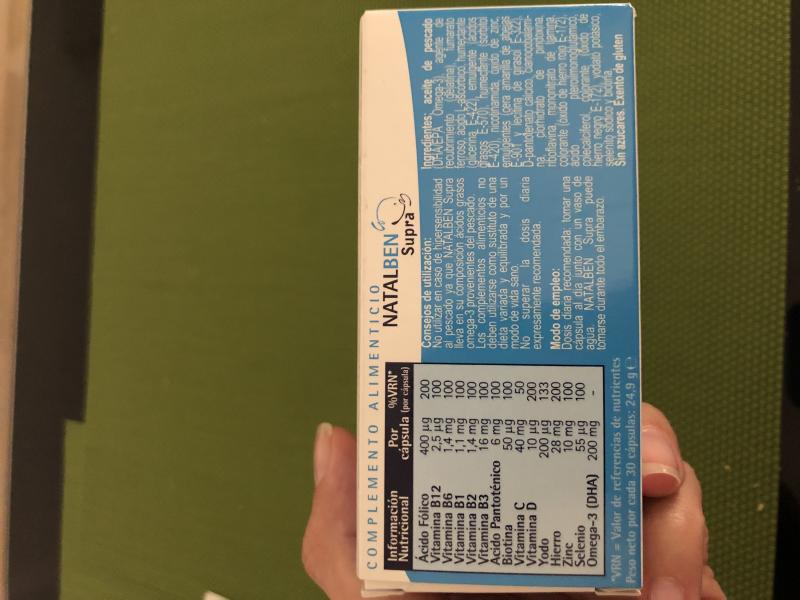 Empecé con Natalben los 3 primeros meses de embarazo y bien. Ahora me estoy tomando el acido fólico, un complejo vitamínico, y hierro aparte (todas de la SS). En mi opinión son muy completas y bastante más práctico tomarte sólo una cápsula al día pero demasiado caras. - Ventajas: