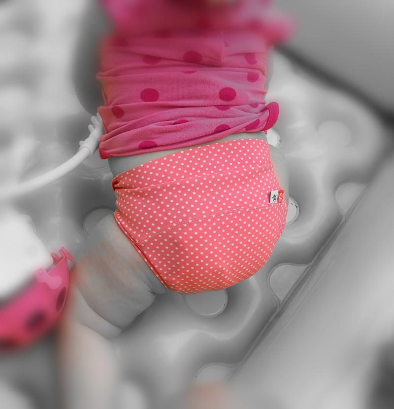 La verdad es que no habia usado nunca pañales de tela y el sistema del bañador es parecido así que me causaba mucha curiosidad. Es muy fácil de poner y de ajustar gracias al velcro que lleva en la cinturilla, de tal manera que aunque el bebé crezca le sigue valiendo una buena temporada. En concreto yo use la talla M que va de los 7 a los 13kg, en el caso de los pañales de agua desechables para ese rango de peso tenía que haber comprado dos tallas diferentes y luego sobran de uno y de otro.