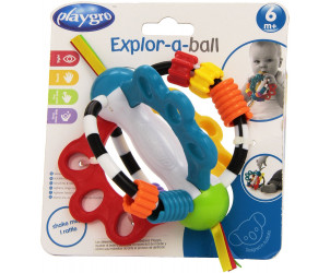 La pelota exploradora de Playgro. Una extraordinaria manera de ayudar al bebé a descubrir una gran variedad de texturas, materiales y colores.