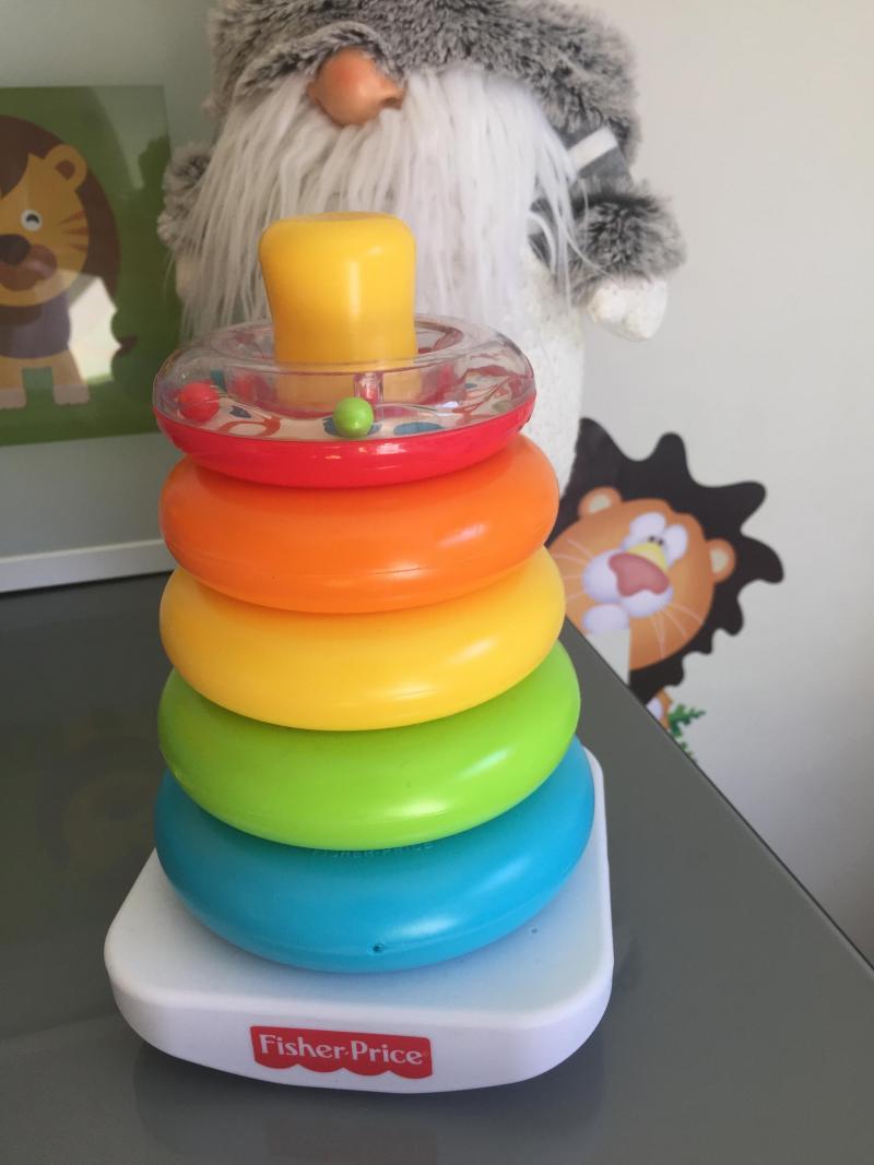 Este juguete lo teníamos en casa cuando mi hijo era pequeño. Es muy divertido porque va poniendo cada aro en el palo del más grande al más pequeño, el primero de arriba es transparente y tiene bolitas de colores que hace ruido si lo mueves. Es super bonito y es blandito no hace daño si se cae, es resistente ante las travesuras infantiles jajaja lo volvería a comprar cuando tuviese otro bebé - Ventajas: