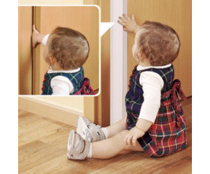 Ideal para utilizar en el interior de la puerta, pero también es conveniente su uso en el exterior impidiendo que el pequeño intervenga en la hendidura de la puerta por el lado de la bisagra.
