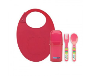 Los cubiertos aun no los uso porque mi bebe es muy pequeño. Me gusto por lo compacto que era para comer fuera de casa. El babero no me gusta porque la papilla resbala y termina manchandose las piernas - Ventajas:
