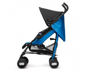 El respaldo es completamente reclinable y puede ajustarse en 4 posiciones diferentes con una sola mano. La silla de paseo Echo está homologada para su uso desde el nacimiento.