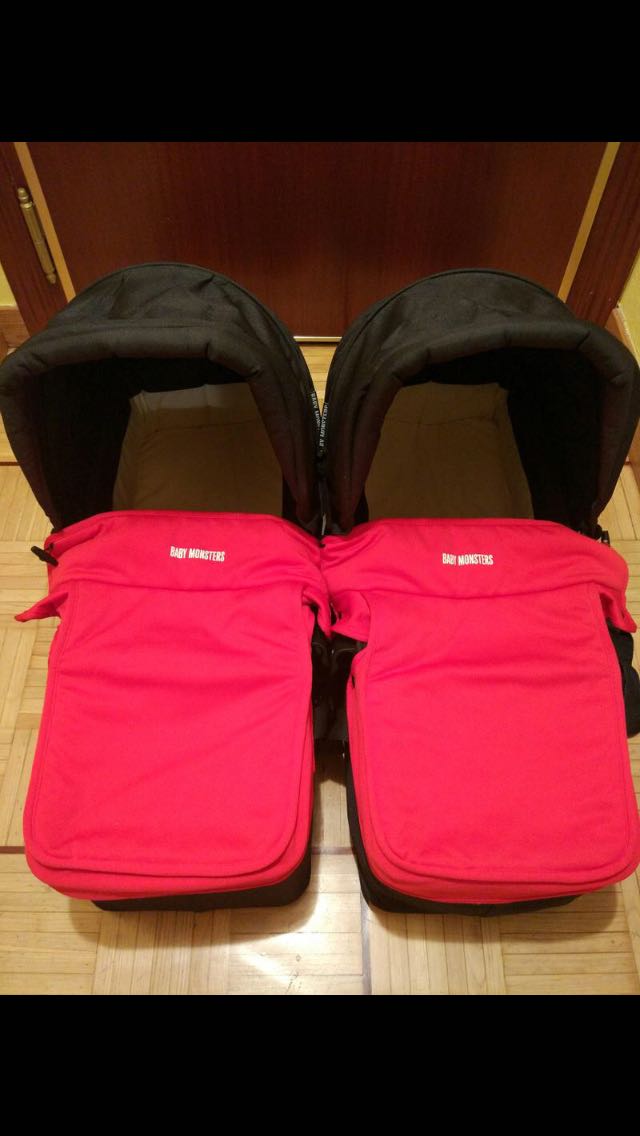 Es un carro perfecto para gemelos, por su estrechez pasa por todas las puertas y ascensores. Los capazos son estrechos, pero suficiente para tenerlos hasta los 4 meses minimo.