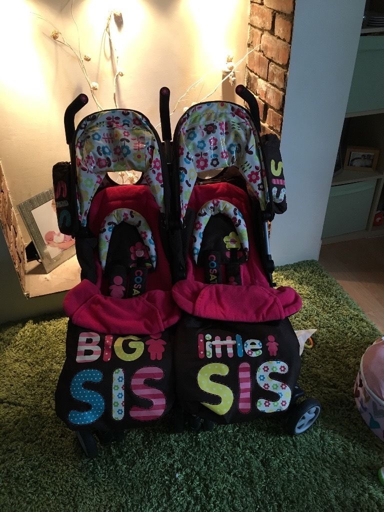 Yo tengo el gemelar pixels, es muy manejable, fácil para plegarlo y cómodo, muy completo ya que trae plástico de lluvia, vasito para la mama o papá y dos termos para los bibis de los peques, se tumba prácticamente entero y se puede regular la parte de las piernas de los niños y los mangos.. Para mi me encanta ???????? - Ventajas: