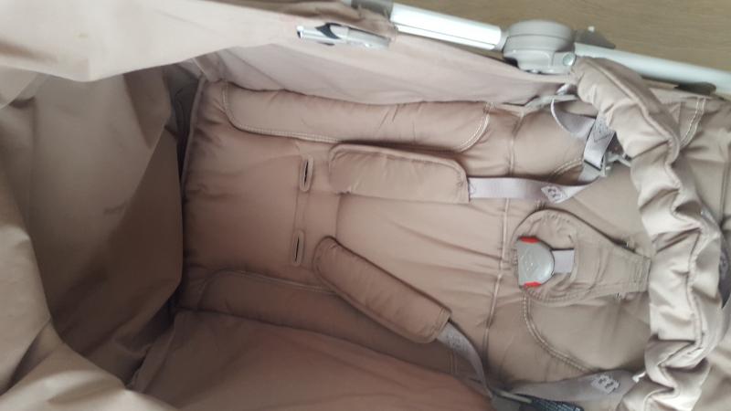 La capota es extensible y muy amplia hasta el punto de no hacer necesario un paraguas para el sol.