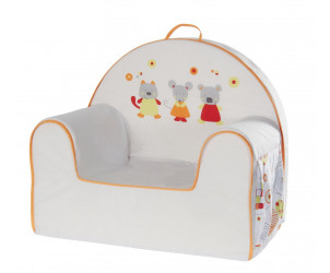 Silla estilo sofa para niño, con bolsillos de almacenamiento en los laterales y asa de transporte para el bebé.