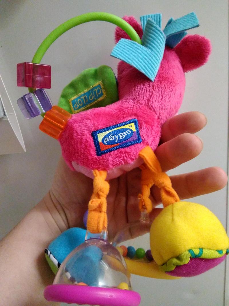 Juguete atractivo a partir de los 4 meses mas o menos. No pesa mucho y tiene bastantes sitios delgados para amarrarlo. Tiene muchos colores y sonidos. - Ventajas: