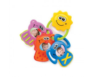 Este sonajero es de lo mejor, ya que le puedes meter fotos de las personas mas queridas por El, es muy ligero de material muy blando para sus dientitos, ideal para que el empieza a reconocer a las personas y su precio es muy bueno.