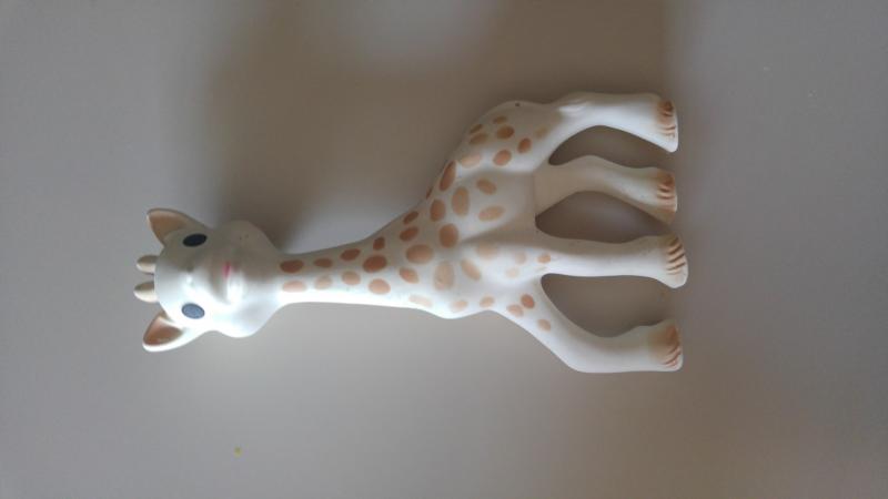 A mi bebé le encanta su Sophie, la tiene desde los 3 meses y le resulta muy fácil de agarrar y manipular. Está hecha de caucho natural y huele genial. Además tiene un pito dentro que suena si se aprieta el cuerpo o la cabeza con lo que se lleva alguna sorpresa. La pintura se desgasta un poco al morderla y chuparla pero es alimentaria y resulta segura. Es un poco cara pero, dependiendo dónde la compres, puedes encontrarla en pack, con lo que sale mejor de precio - Ventajas: