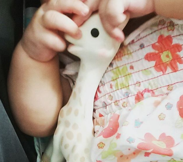Al poco tiempo de nacer nuestra pequeña, nos regalaron una Sophie. Desde bien pequeña a la niña le llamó la atención y la miraba y toqueteaba. Ahora la agarra y la utiliza de mordedor. Le encanta. Va a todas partes con la jirafa. Tanto es así que perdió la que le regalaron y tuvimos que comprar otra.